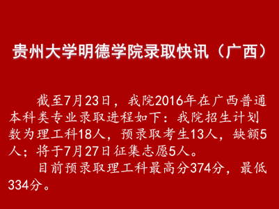 2016年录取快讯(广西本科二批普通类)