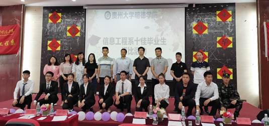 (供稿/供图 王明刚 李杭/钟政雨)2019年4月24日12:20,贵州大学明德学院信息工程系团总支学生会在一号报告厅举办了信息工程系“泰豪之星·十佳毕业生”评选活动。出席本次活动的嘉宾有贵州大学明德学院党委副书记金明辉、信息工程系系主任江奇峰老师、电气工程系党总支书记吴海燕老师、信息工程系党总支副书记王朋虎老师、经济管理系党总支负责人徐娟老师、学生工作处处长助理丁操老师、学生工作处杨茄艺老师、信息工程系团总支书记张兰波老师、现代教育中心崔云飞老师、土木工程系张雪老师、信息工程系卓莉老师、信息工程系赵铖老师、信息工程系李双飞老师、以及各系主席团代表。