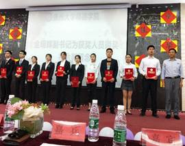 紧接着在主持人的宣布下本次评比活动正式开始,经过初赛,十一位选手脱颖而出,走上了决赛的舞台。在舞台上,他们给学弟学妹们描述了他们大学四年的学习生活,社会实践及他们的实训结果,让学弟学妹们的内心充满斗志以及对未来的期待。 期间,由学生会出演的《渔舟唱晚》让各位选手和观众心情舒畅,增加了活动的气氛。评选中,金明辉副书记、江奇峰主任、徐娟老师分别对十一位选手进行细致的点评,指出他们上台演讲时的一些小瑕疵并希望能及时改正。其次,寄语各位毕业生踏入社会时要牢记校训,好好努力工作,回报社会,回馈母校。