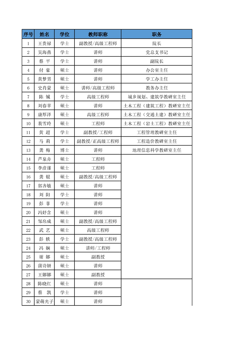 土木工程学院教职工简介