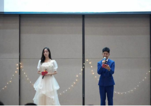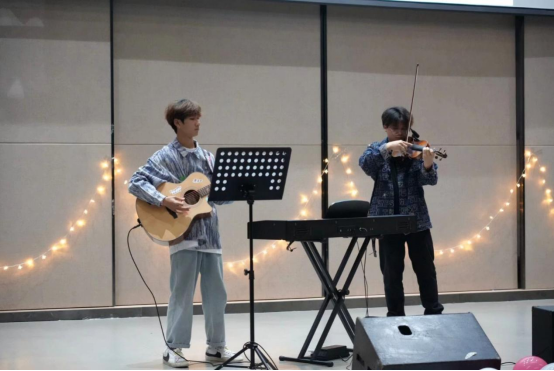 在评选活动的中场时间段,由数字传媒系学生会文体部的同学为大家带来歌曲弹唱《你的名字+love story》,舒缓的音调、柔美的琴声,缓解了现场紧张的氛围。