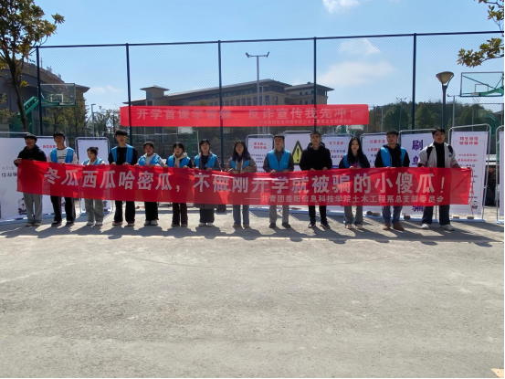 预防诈骗、结核病知识宣传活动。身穿蓝色马甲的土木工程系志愿者们,提前摆好了反诈骗宣传点位,挂好横幅和易拉宝。中午12时整,我系志愿者们以饱满的精神状态为全校师生宣贯反诈骗知识,并耐心讲解结核病的相关注意事项,提示大家做好春季传染疾病的预防,同时通过"零距离"的反诈宣传,提升同学们的识骗防骗能力,进一步筑牢同学们的安全防线,营造和谐稳定的校园环境。