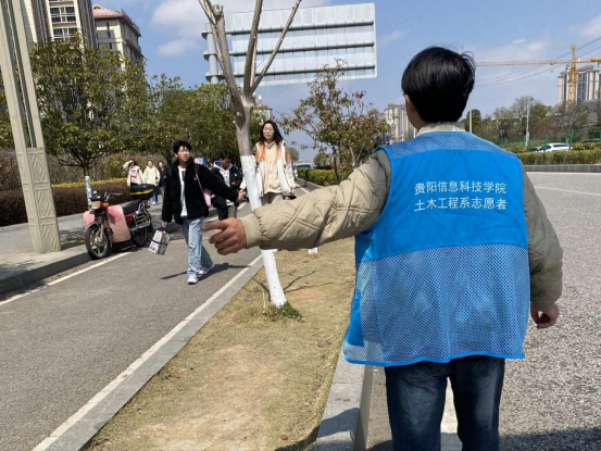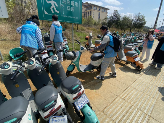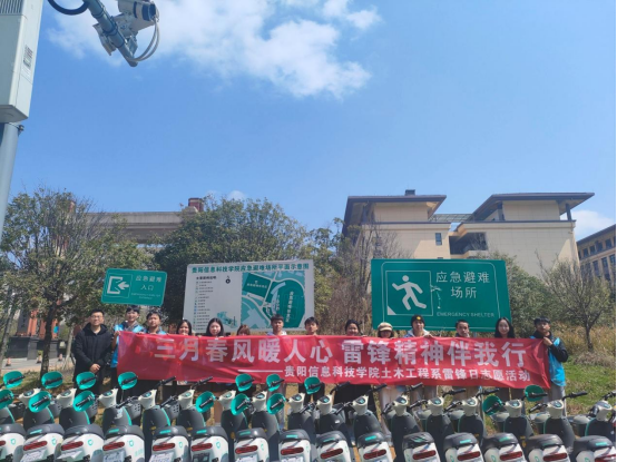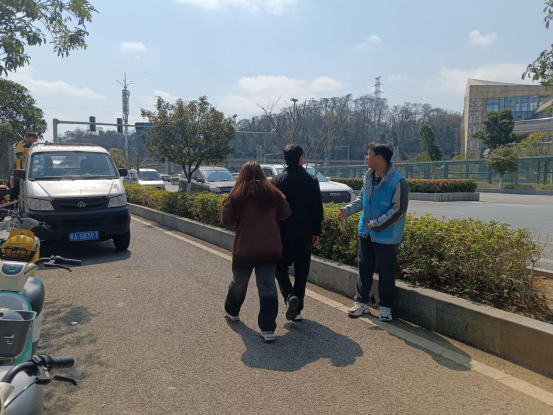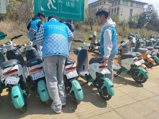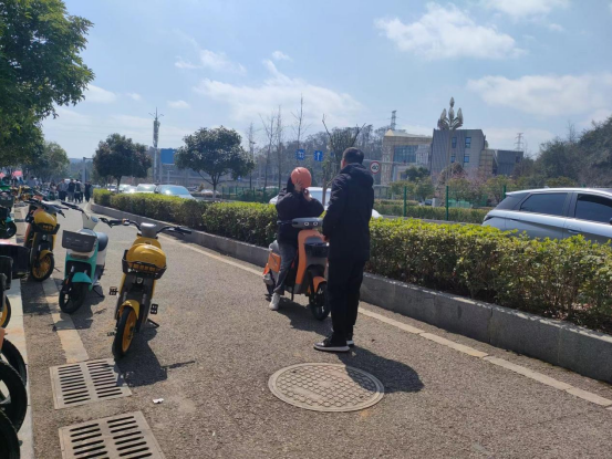 文明劝导安全出行、合理规整电瓶车。下午13时,我系志愿者小分队在学校门口以维护校园交通安全为基调,通过友好的语言和真诚的态度,对于骑共享电单车不佩戴头盔、横穿马路的不文明行为进行及时的引导和劝阻,并把校门口的共享车辆在泊车位上摆放整齐。