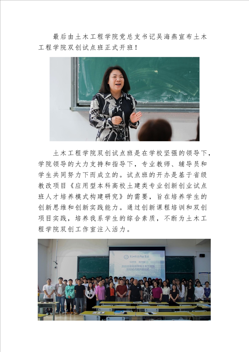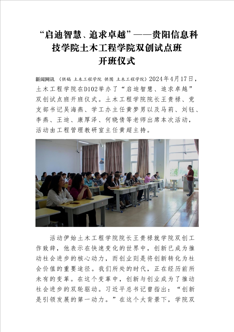 “启迪智慧、追求卓越”——BV伟德中国官方网站土木工程学院双创试点班开班仪式
