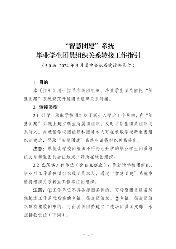 转:“智慧团建”系统毕业学生团员组织关系转接操作指南