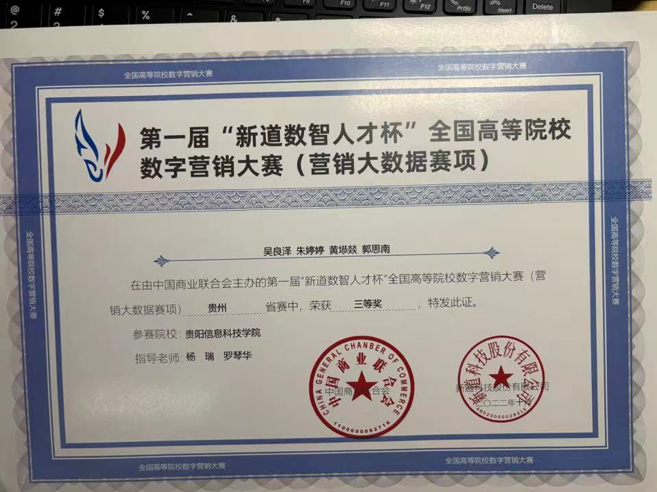 3.“新道数据人才杯”全国高等院校数字营销大赛三等奖