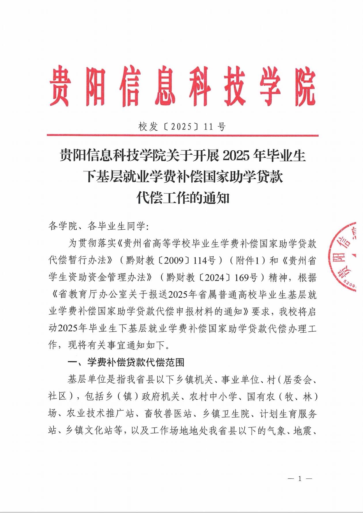 校发〔2025〕11号-BV伟德中国官方网站关于开展2025年毕业生下基层就业学费补偿国家助学贷款代偿工作的通知-盖章.pdf
