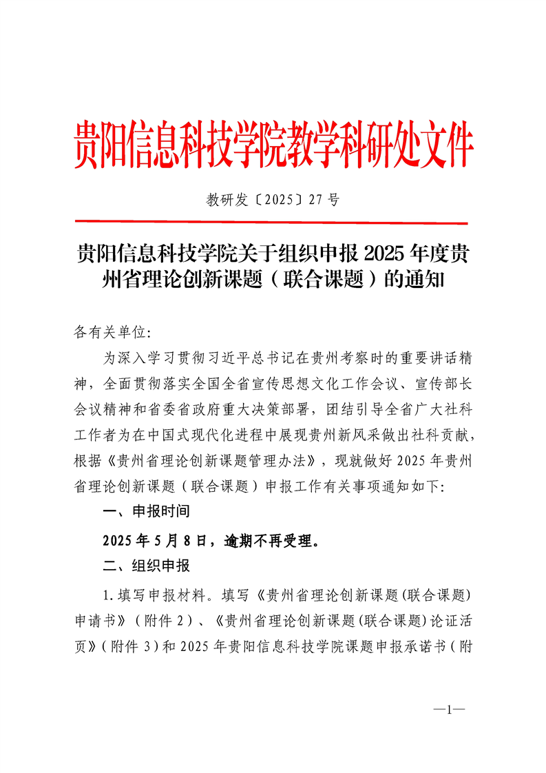BV伟德中国官方网站关于组织申报2025年度贵州省理论创新课题(联合课题)的通知