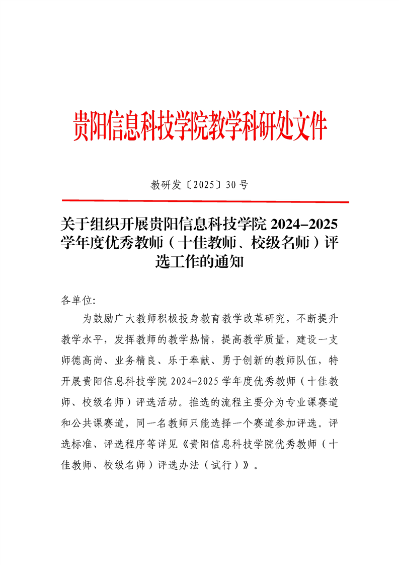 关于组织开展2024-2025学年度优秀教师(十佳教师、校级名师)评选活动的通知