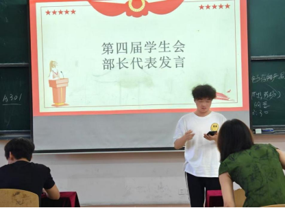 紧接着,大会进入表彰环节,优秀部门名单逐一揭晓。优秀部长代表文建祥发表讲话,他对全体成员的辛勤付出致以诚挚谢意,并表示之后在学生会工作中:一是要坚定理想信念,充分发挥思想引领作用;二是要强化服务意识,切实维护同学权益;三是要不断提升自身能力,着力打造高效能学生组织。