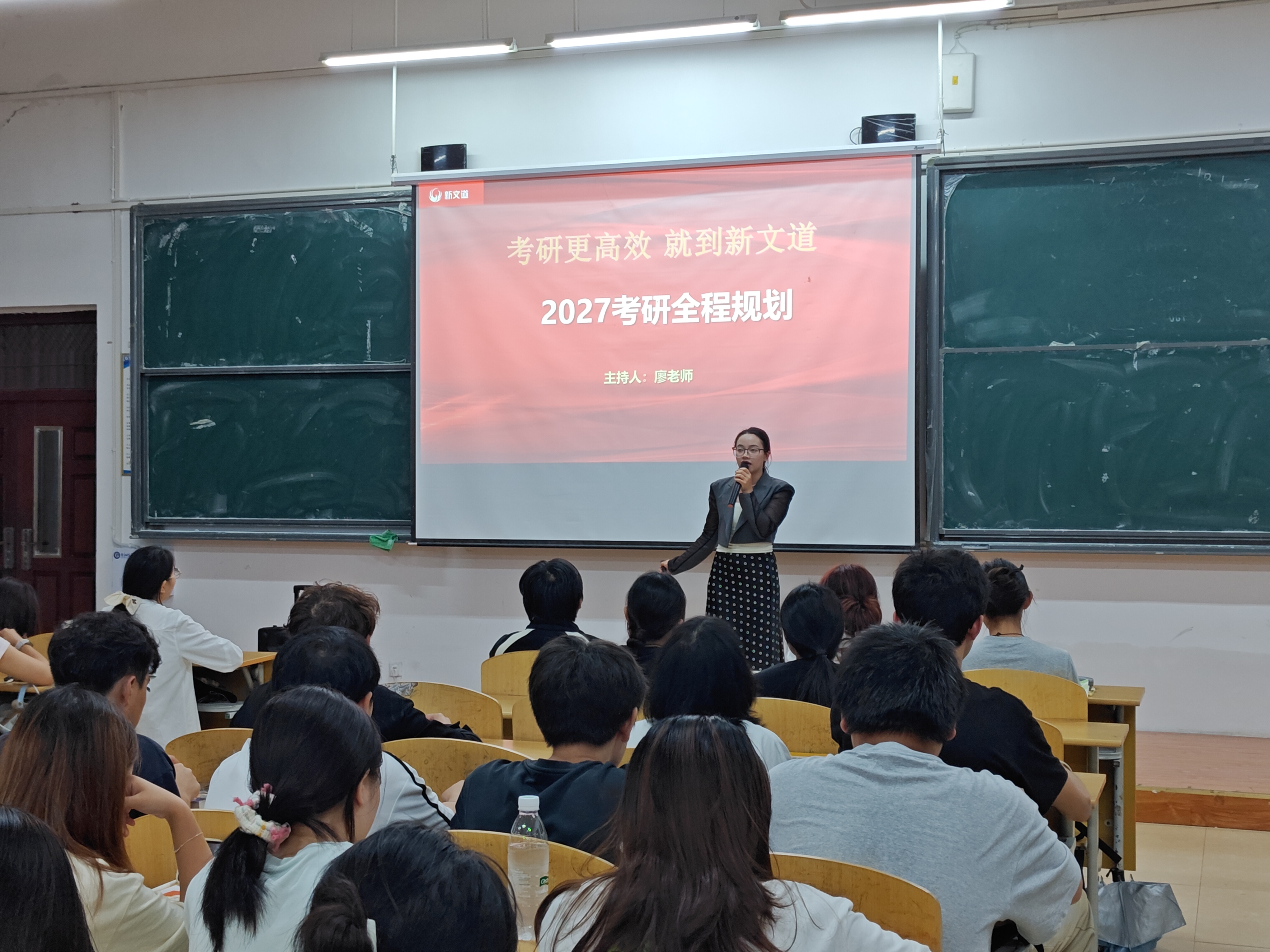 新闻网讯(供稿 赵政 供图 马锟)为帮助2026届毕业生深入了解考研最新政策,科学规划备考路径,2025年9月28日晚,经济管理学院在教学楼1号报告厅成功举办考研育人专题讲座。此次活动是学院推进就业育人工作的重要举措,吸引了众多有志于深造的学生积极参与。