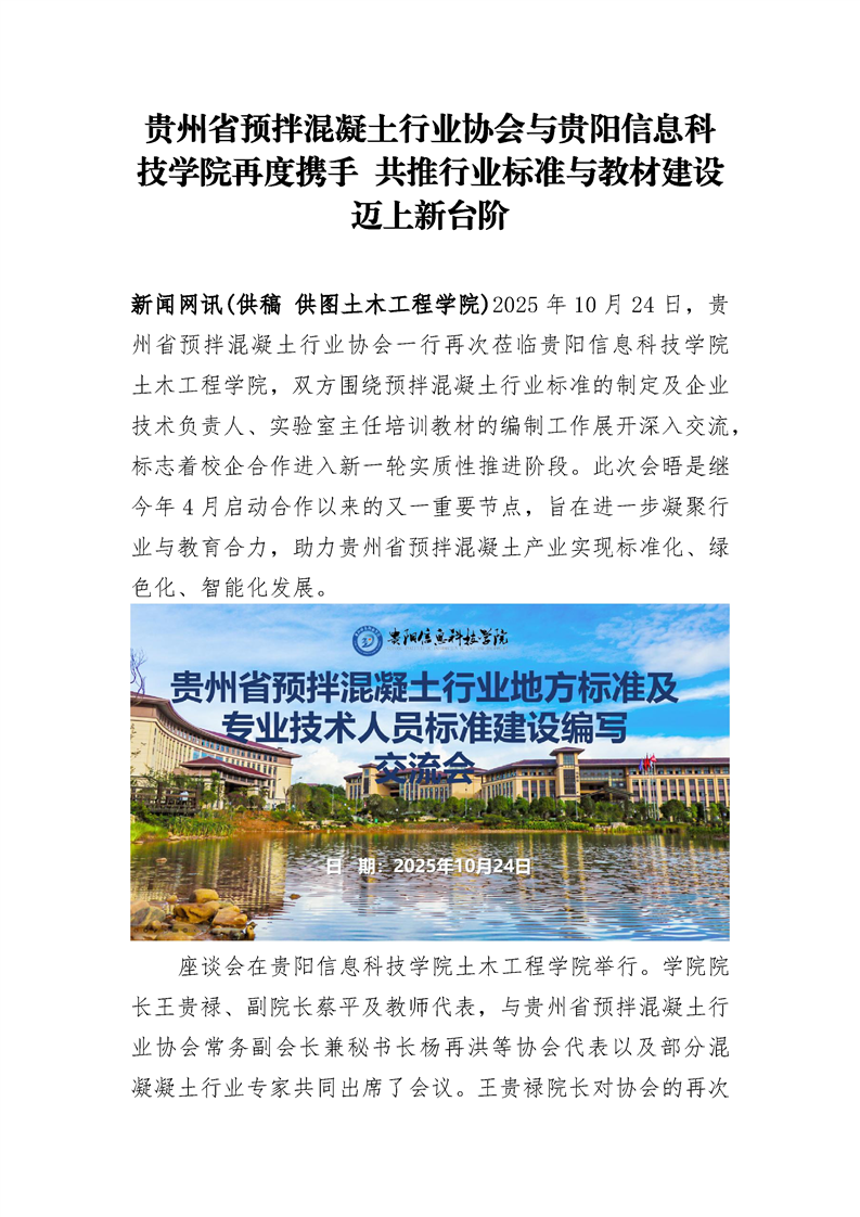 贵州省预拌混凝土行业协会与BV伟德中国官方网站再度携手 共推行业标准与教材建设迈上新台阶