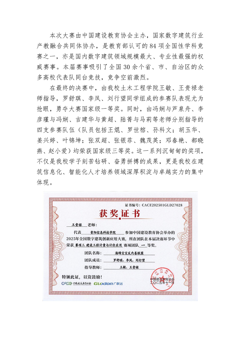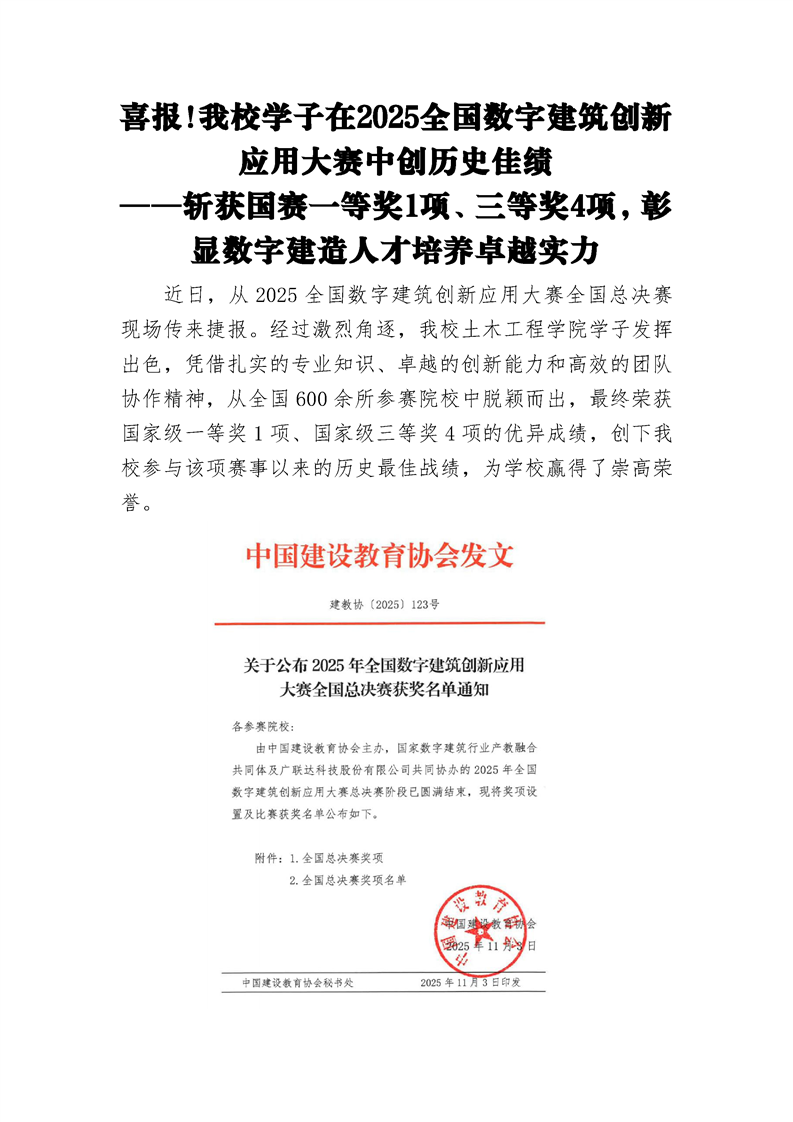 喜报!伟德官网学子在2025全国数字建筑创新应用大赛中创历史佳绩 ——斩获国赛一等奖1项、三等奖4项,彰显数字建造人才培养卓越实力