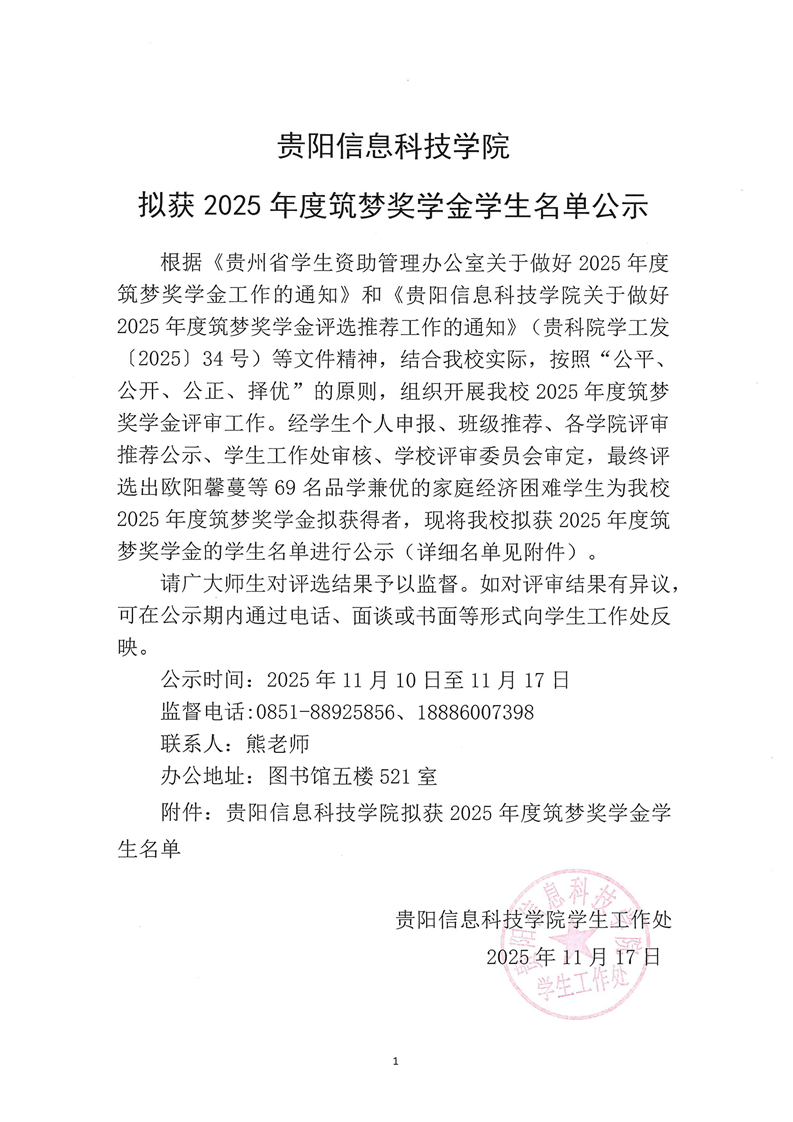BV伟德中国官方网站拟获2025年度筑梦奖学金学生名单公示