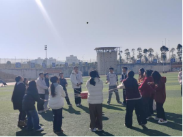 “同心鼓”游戏中,同学们自发围向鼓面,双手稳稳握住鼓绳,目光紧紧锁定鼓面之上的小球,那份想要接好每一次球的认真劲儿,感染着在场的每一个人。大家步调一致,随着鼓点轻轻发力,在一次次尝试中默契渐生。没有应付式的敷衍,只有全情投入的享受——无论是成功接球时的欢呼,还是偶尔失误后的互相鼓励,都让团队凝聚力在协作中不断升温,每个人都在团队的力量里感受到了归属感与成就感。