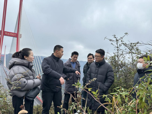 鸭池河特大桥作为该区域的标志性建筑,主跨800米,桥面距河面434米,曾获国际桥梁大奖古斯塔夫·林德撒尔奖。这座大桥不仅是交通要道,更成为当地旅游的重要吸引点,其观景平台年接待游客超10万人次。考察团实地踏勘了鸭池河大桥文旅项目规划区域。新店镇党委委员、副镇长裴伟介绍了鸭池河区域的发展规划:“我们计划依托大桥景观和东风湖水域资源,打造‘桥旅融合’示范项目,将交通基础设施转化为旅游吸引物。”李锐锋院长对这一规划表现出浓厚兴趣:“数字传媒学院可以在视觉设计、沉浸式体验打造方面提供专业支持,帮助将这座工程奇迹转化为文化地标。”