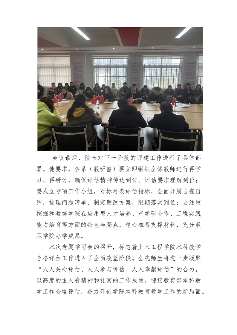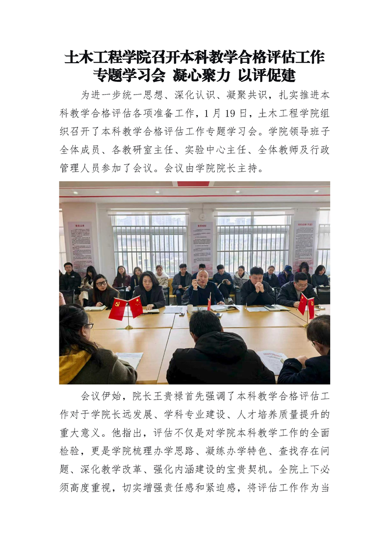 土木工程学院召开本科教学合格评估工作专题学习会 凝心聚力 以评促建