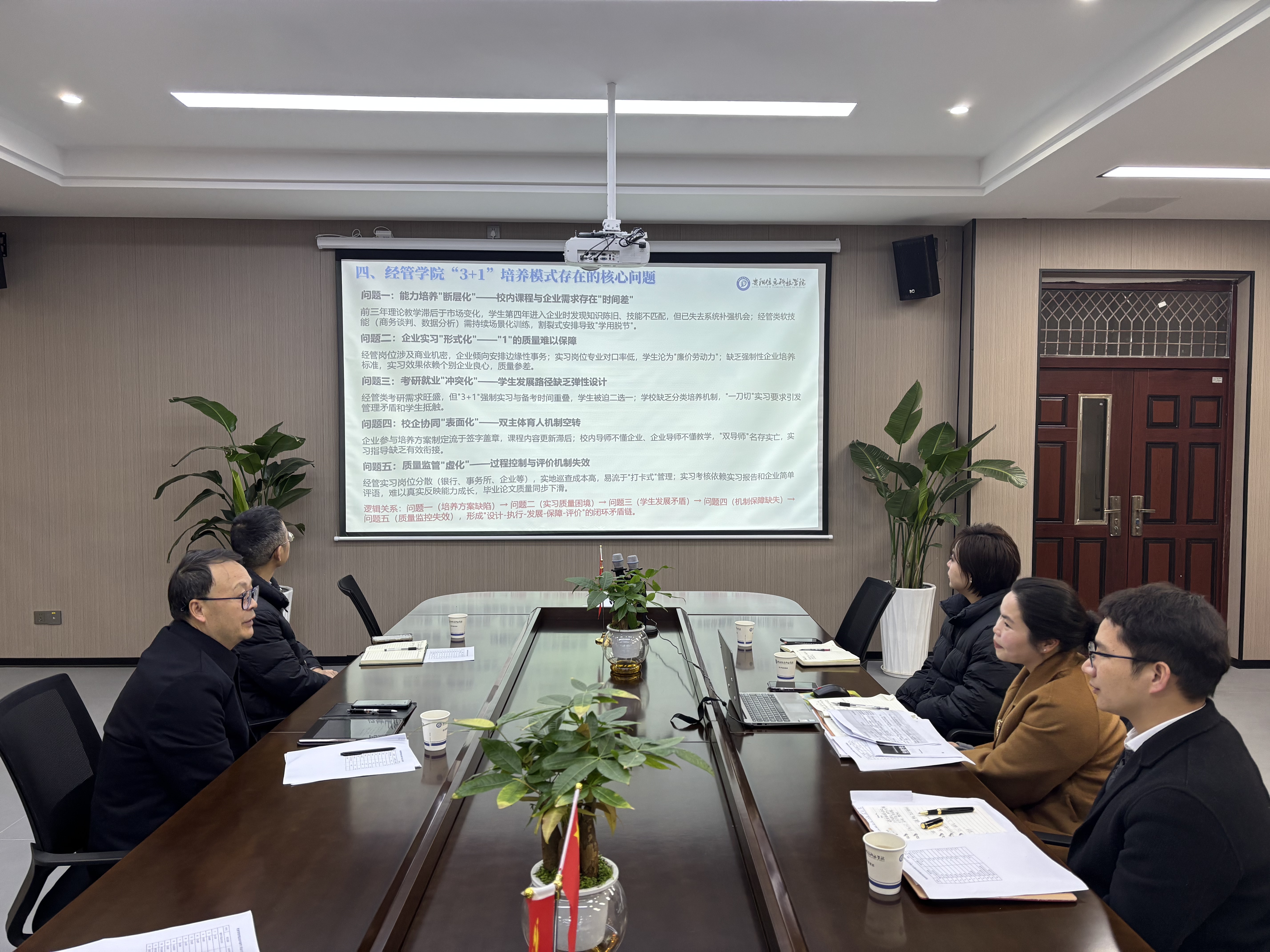 座谈会上,曹彩霞院长围绕学院基本情况、2025年重点工作完成情况、"3+1"实习实训现状等方面作专题汇报,并重点就本科教学合格评估"三个基本"达标过程中存在的困难与问题进行汇报。罗永祥教授对学院前期工作给予充分肯定,并就下一阶段工作提出系统性指导意见。他强调,学院要坚持以"三个基本"为问题导向,牢固树立"走前列、作表率"的工作宗旨,将迎评工作打造成标杆样板。具体而言,要构建"一个主体、两翼支撑、三个层面、七个问题"的框架体系,确保每项整改措施目标清晰、责任到人、成效可测;要建立"自查—改进—公示—检查"的闭环工作机制,通过多轮次持续改进,推动学院内涵式发展迈上新台阶。