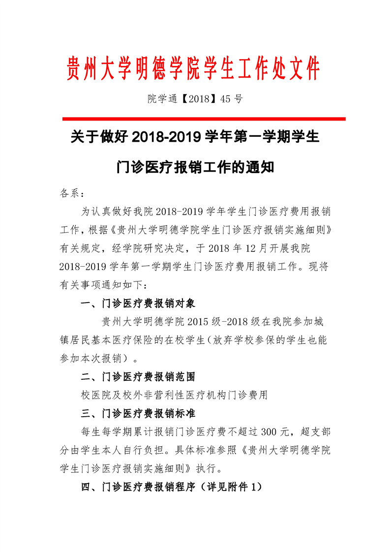 贵州大学明德学院在校大学生基本医疗保险门诊医疗费报销管理办法 (试行)