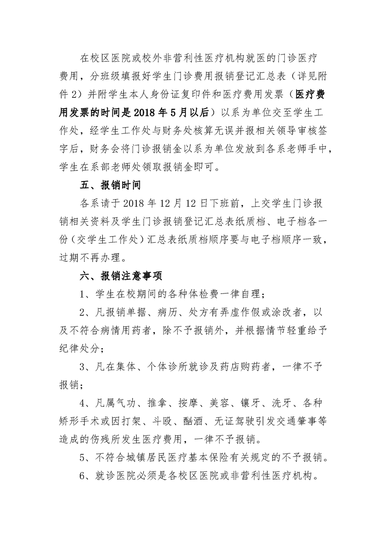 关于做好2018-2019学年第一学期学生 门诊医疗报销工作的通知