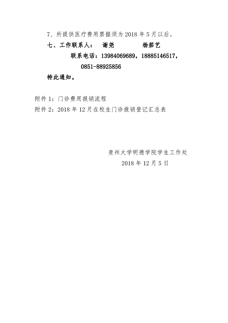 贵州大学明德学院学生门诊医疗报销实施细则