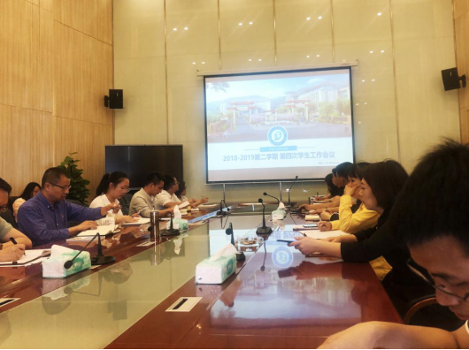 新闻网讯(学工处 邹佩君)2019年6月4日14:00,我院2018-2019学年第二学期第四次学生工作会议在图书馆五楼会议室召开,学生工作处副处长张吉林主持会议,学院党委书记郭林桦,院长助理、学生工作处处长宿强,学生工作处全体人员及全院辅导员参加此次会议。