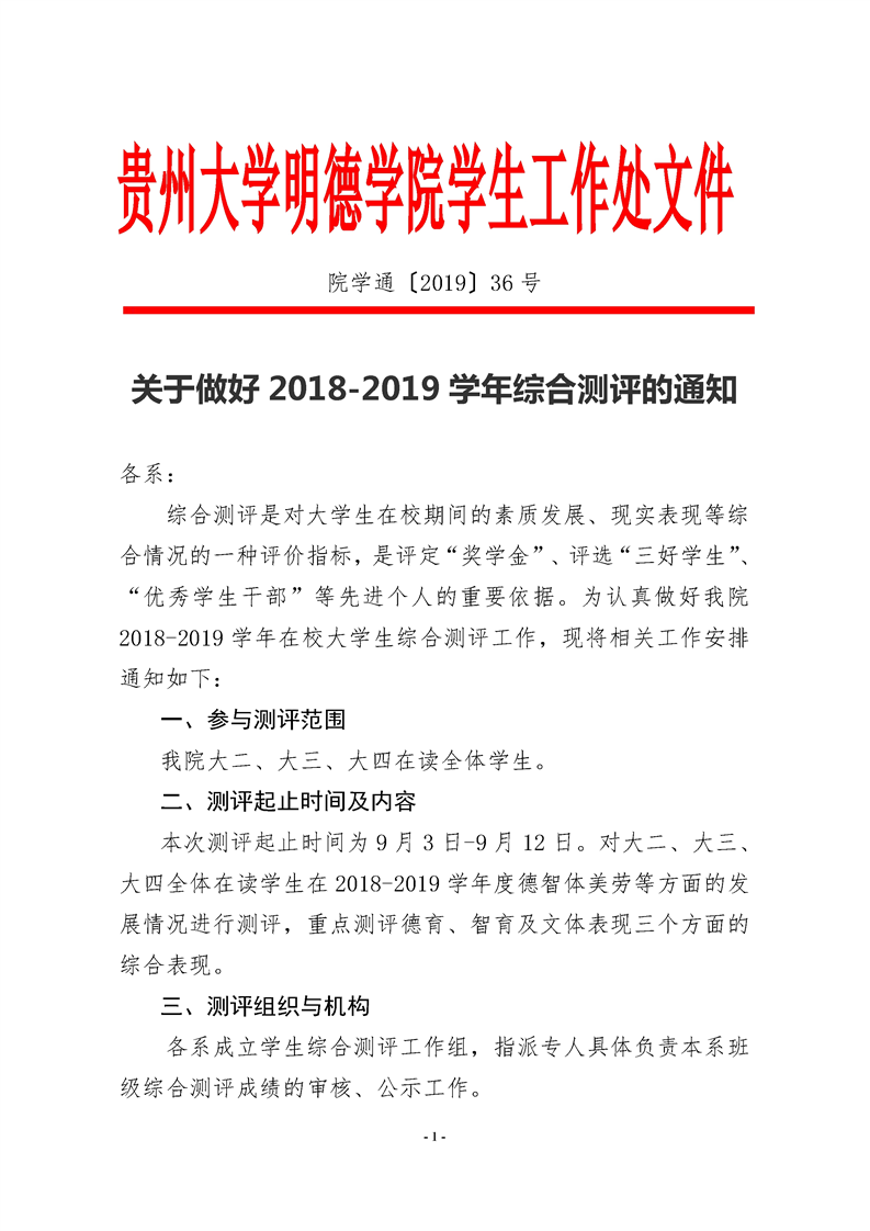 关于做好2018-2019学年综合测评的通知