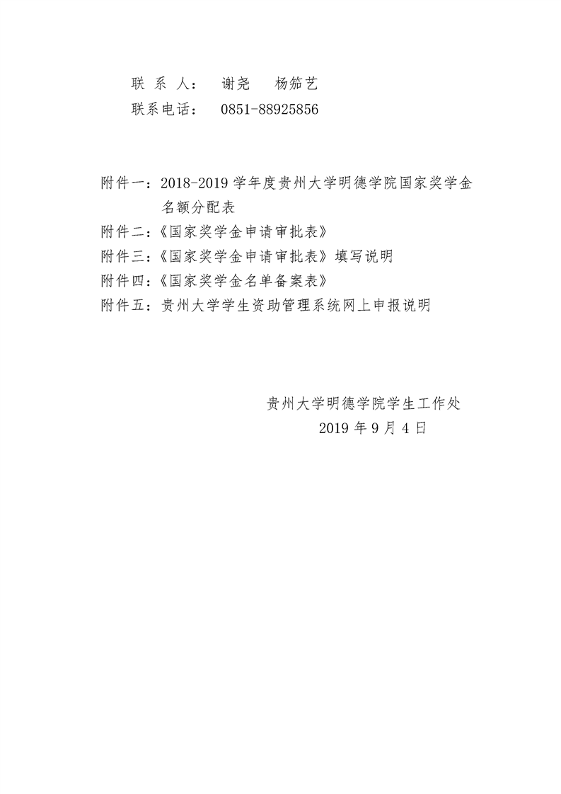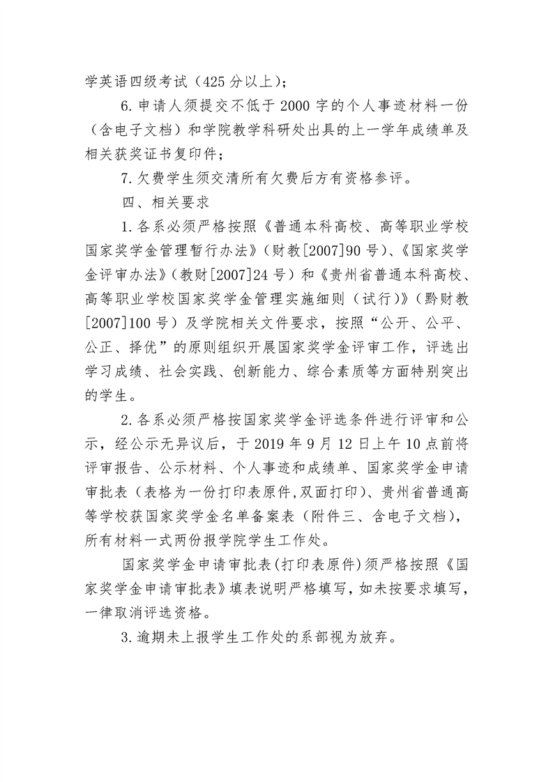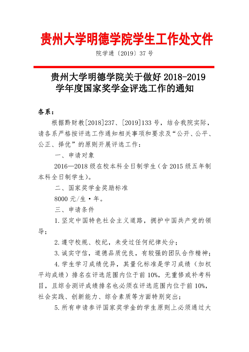 贵州大学明德学院关于做好2018-2019学年度国家奖学金评选工作的通知
