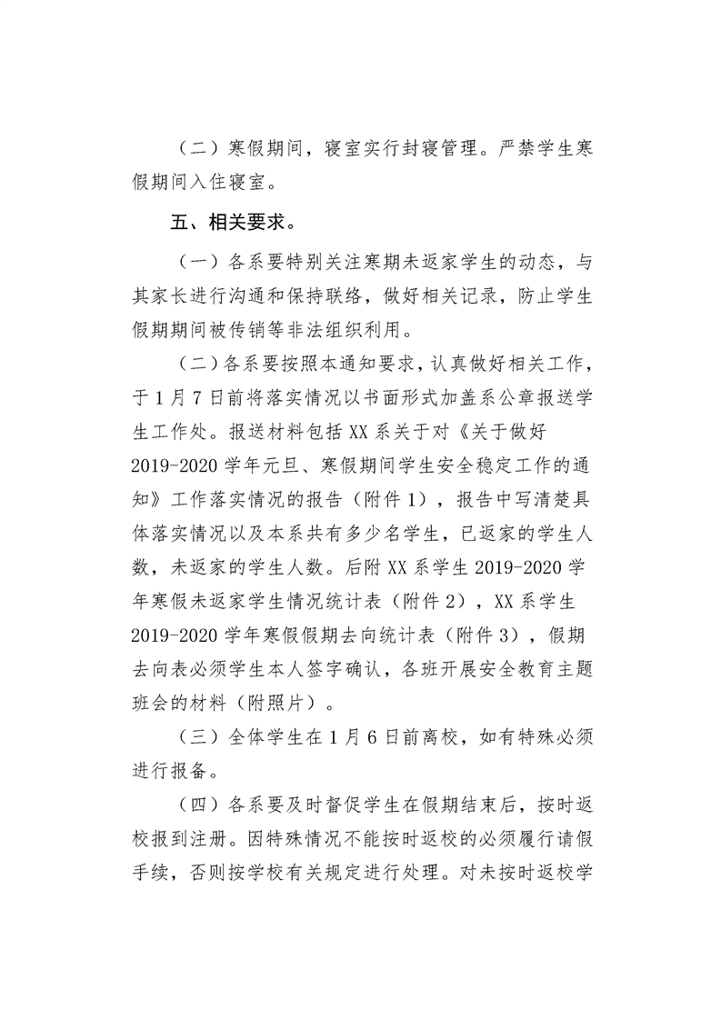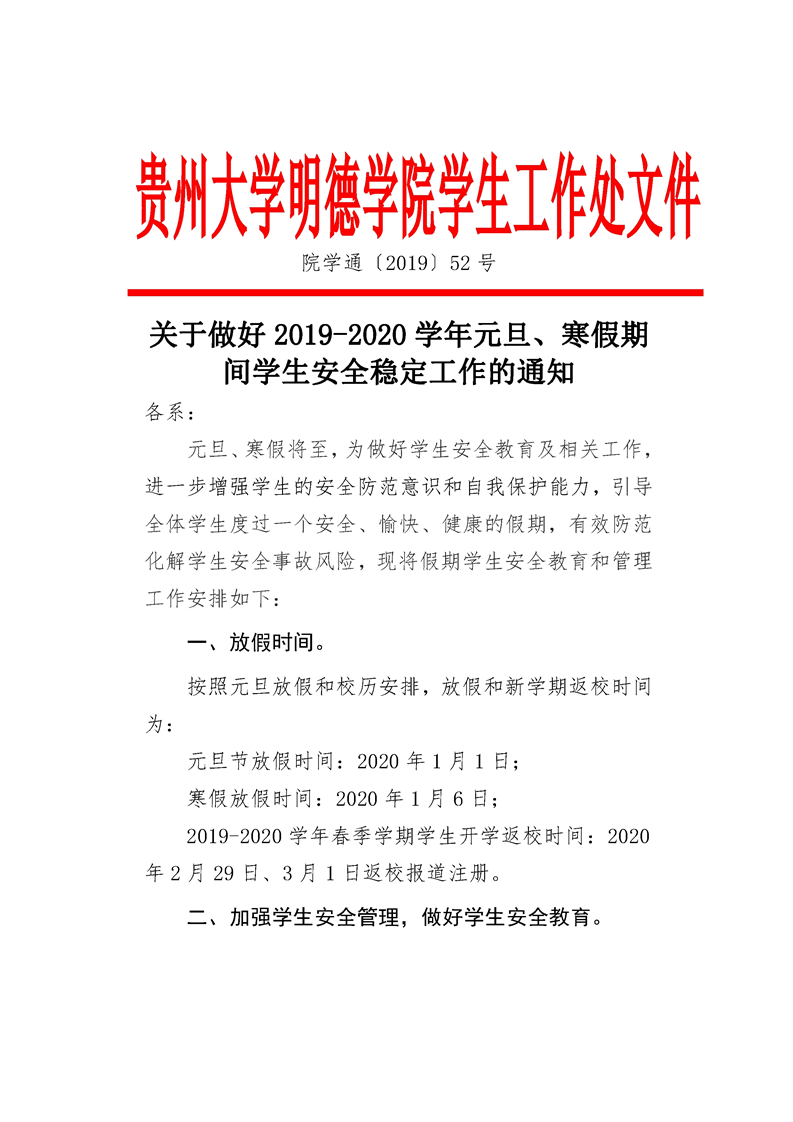 关于做好2019-2020学年元旦、寒假期间学生安全稳定工作的通知