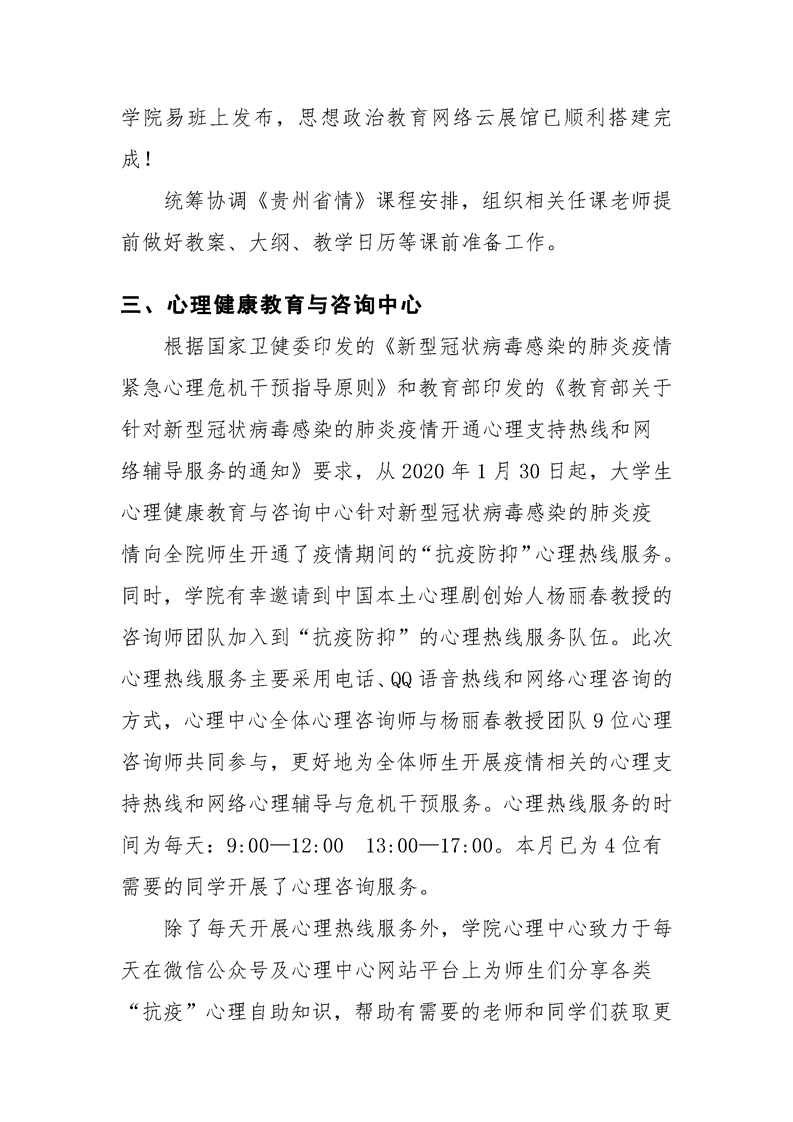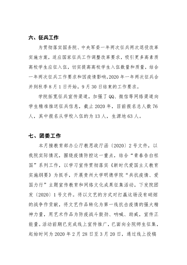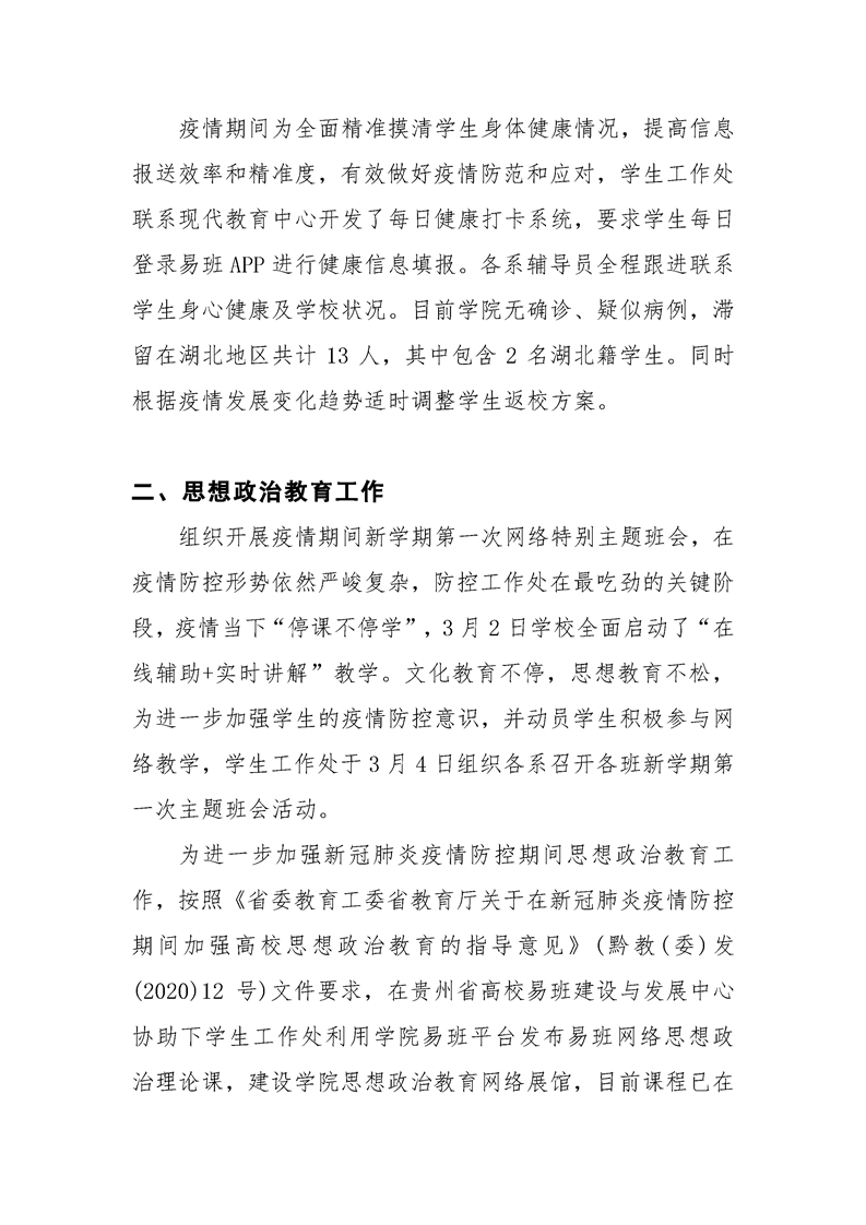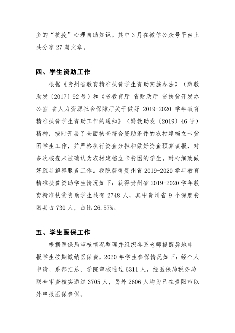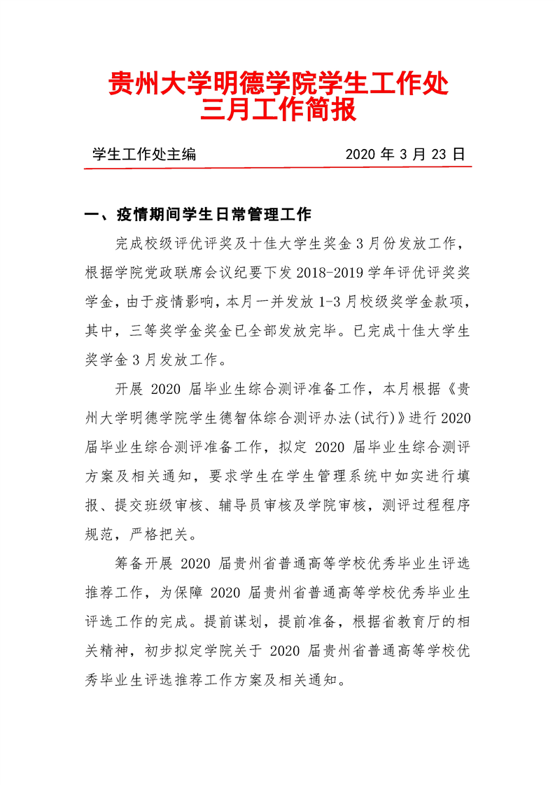 贵州大学明德学院学生工作处2020年3月工作简报