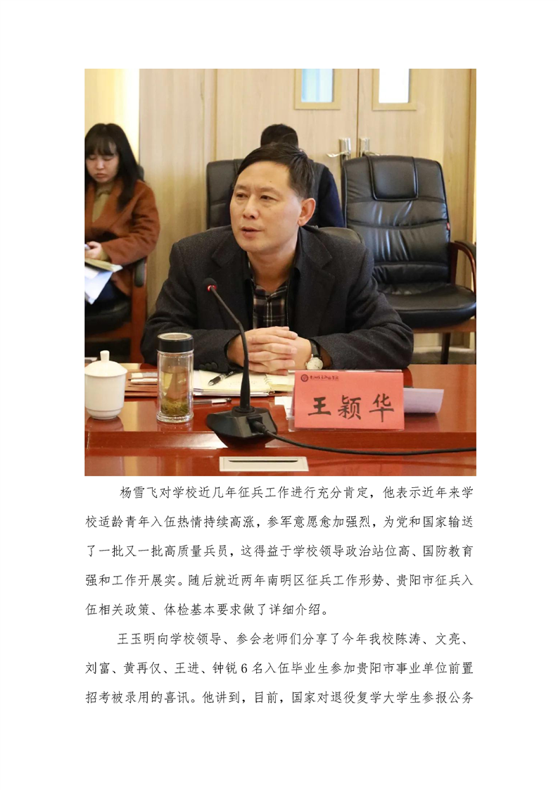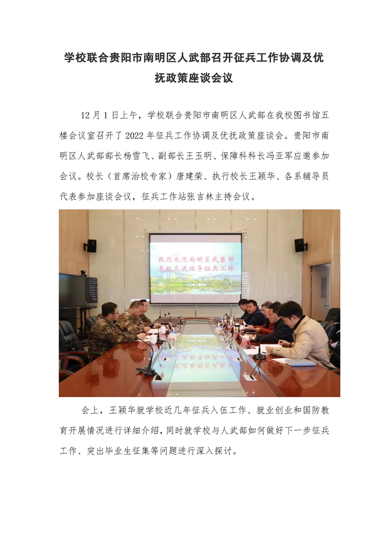 学校联合贵阳市南明区人武部召开征兵工作协调及优抚政策座谈会议