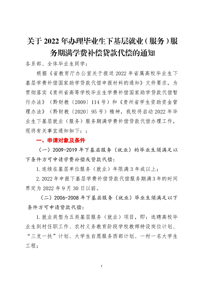 关于2022年办理毕业生下基层就业(服务)服务期满学费补偿贷款代偿的通知
