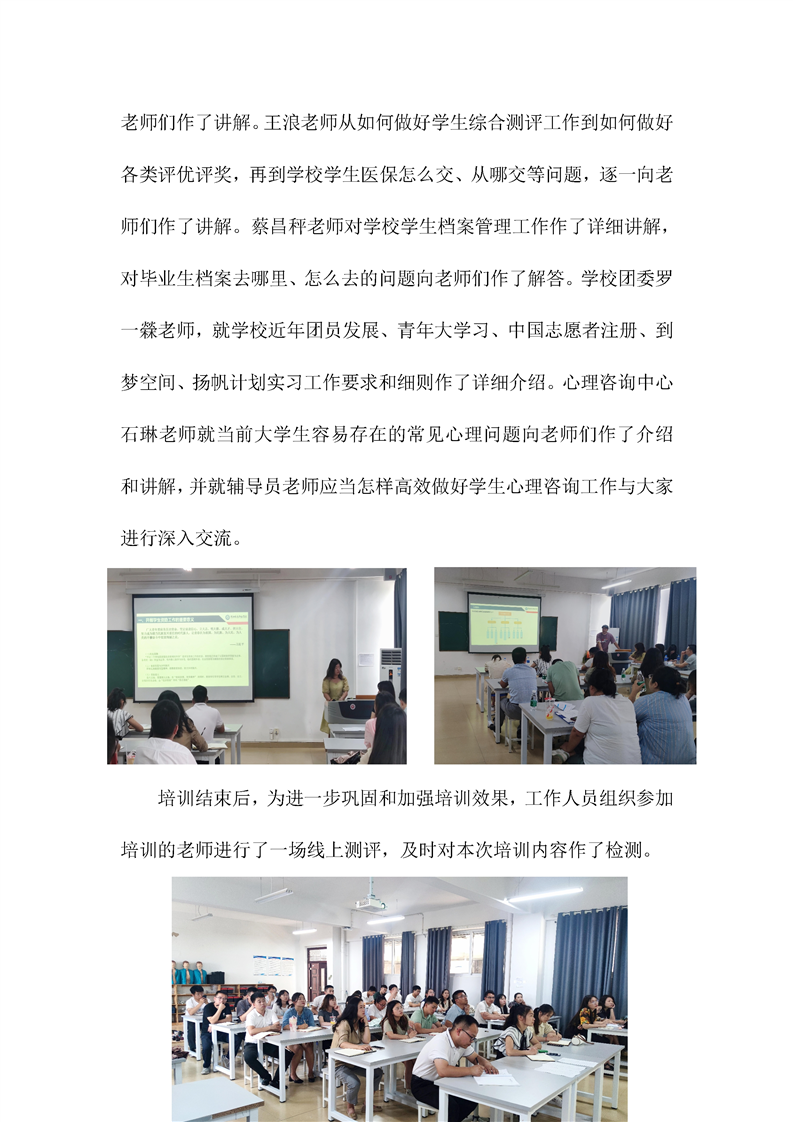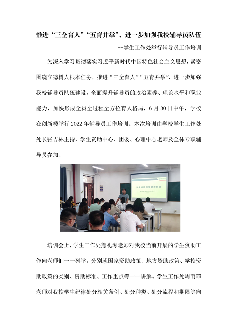 推进“三全育人”“五育并举”,进一步加强伟德官网辅导员队伍--学生工作处举行辅导员工作培训