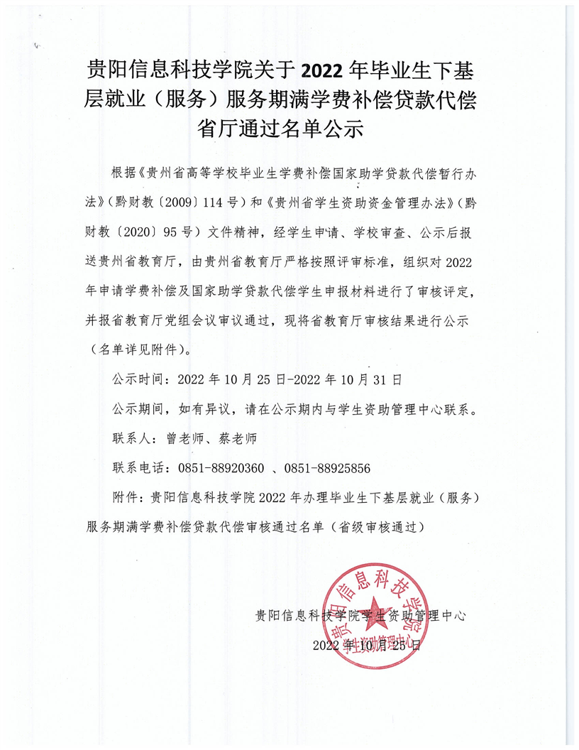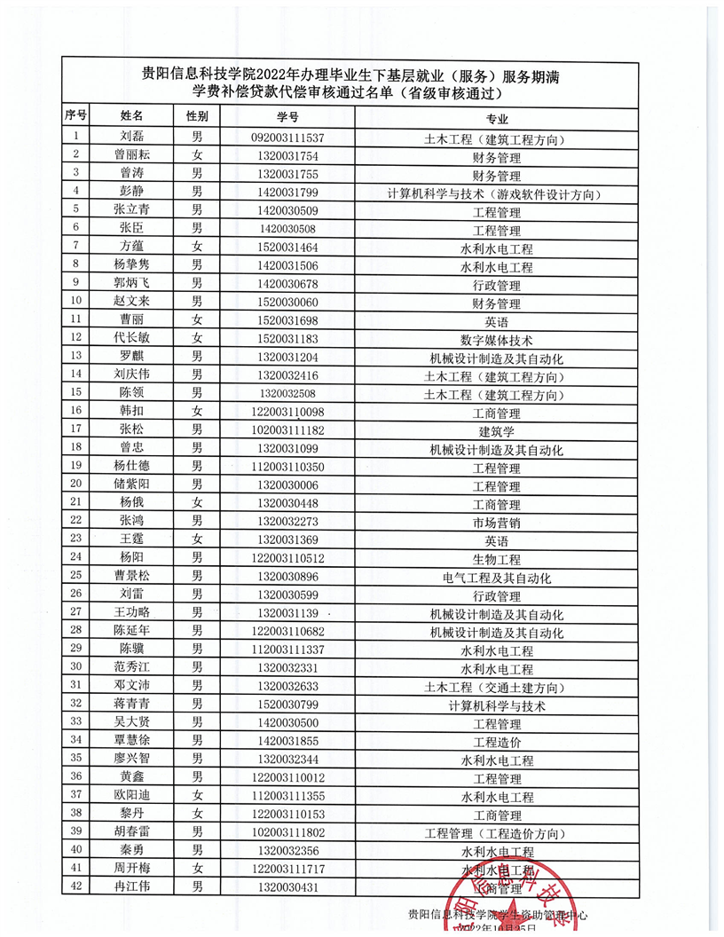 BV伟德中国官方网站关于2022年毕业生下基层就业(服务)服务期满学费补偿贷款代偿省厅通过名单公示