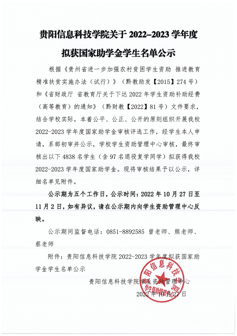BV伟德中国官方网站关于2022-2023学年拟获国家助学金学生名单公示