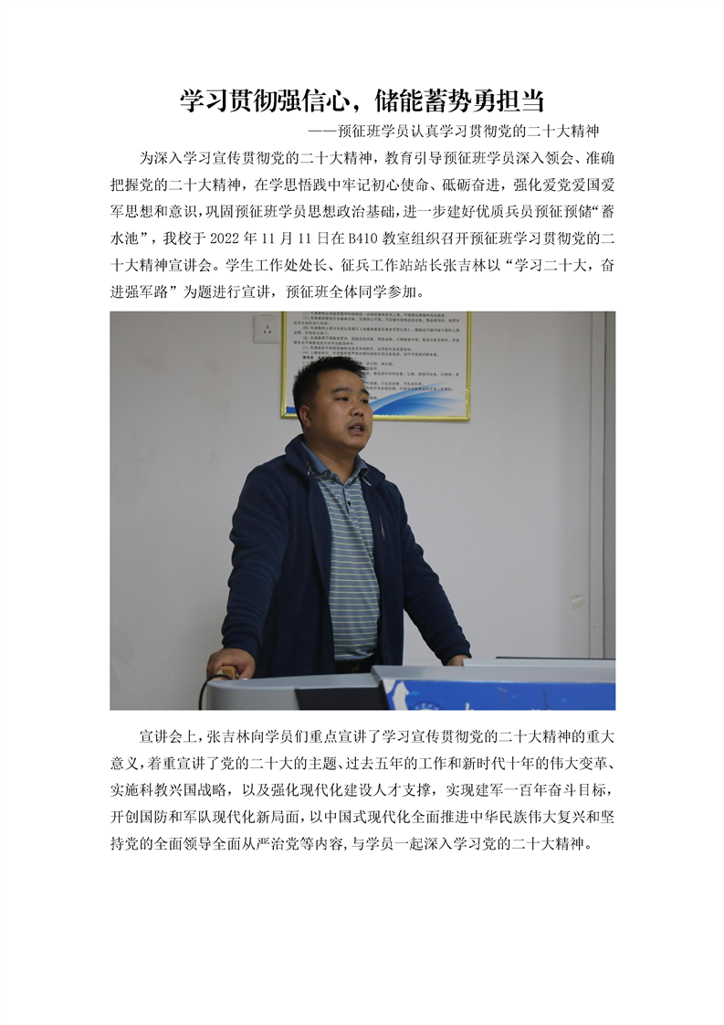 学习贯彻强信心,储能蓄势勇担当--预征班学员认真学习贯彻党的二十大精神
