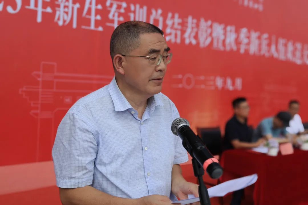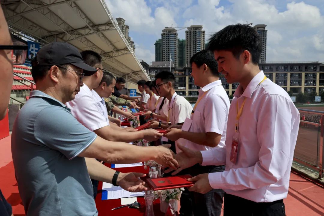 “一粒汗水,一份荣耀。一纸证书,是荣誉,也是见证”。唐建荣宣读《关于表彰2023级新生军训先进集体和先进个人的决定》。