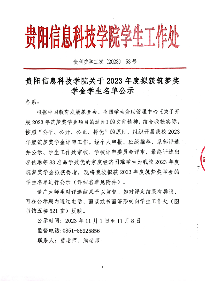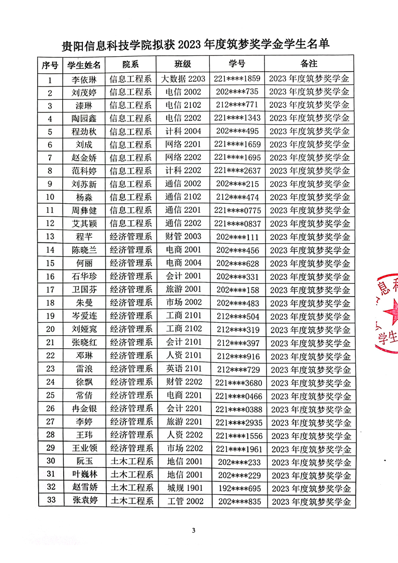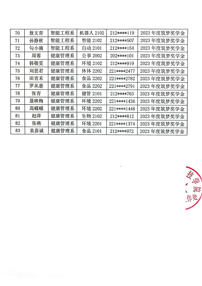 BV伟德中国官方网站关于2023年度拟获筑梦奖学金学生名单公示