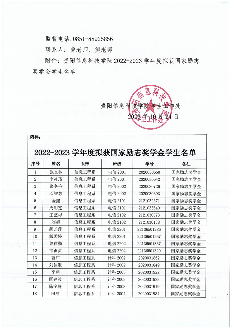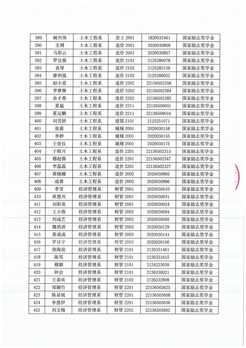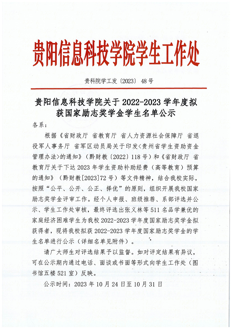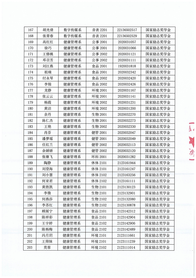 关于BV伟德中国官方网站2022-2023学年度拟获国家励志奖学金学生名单公示