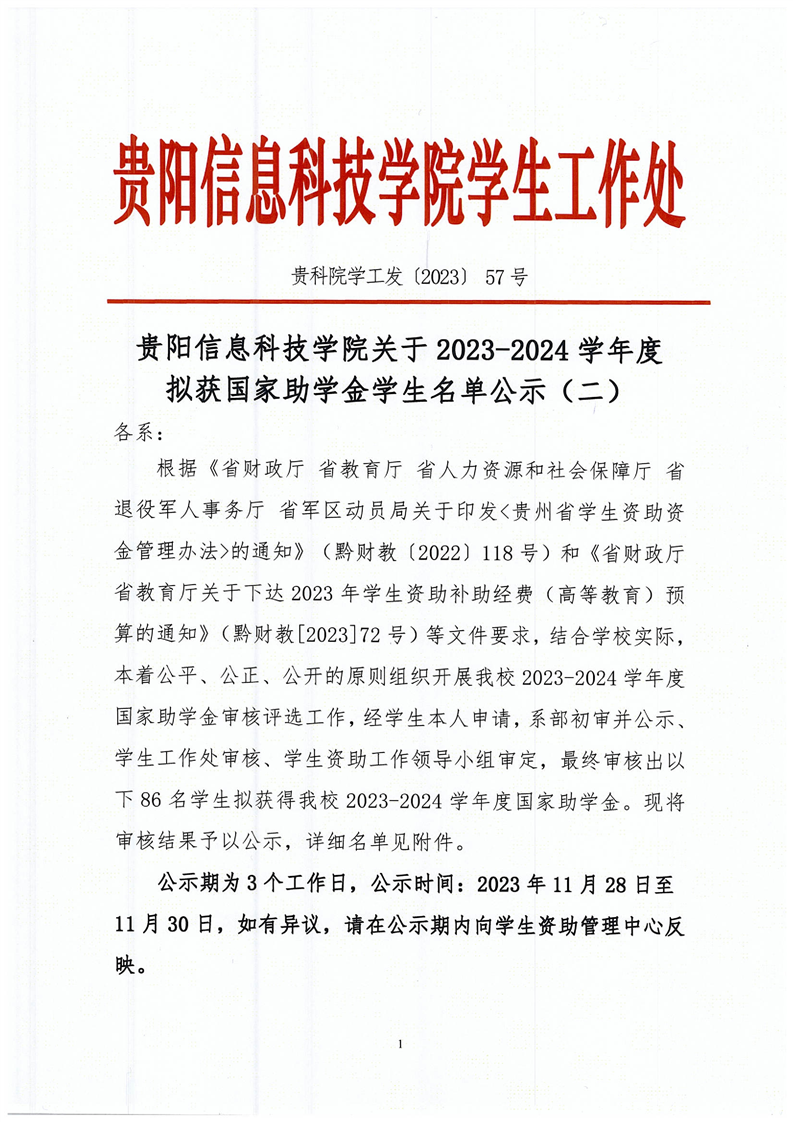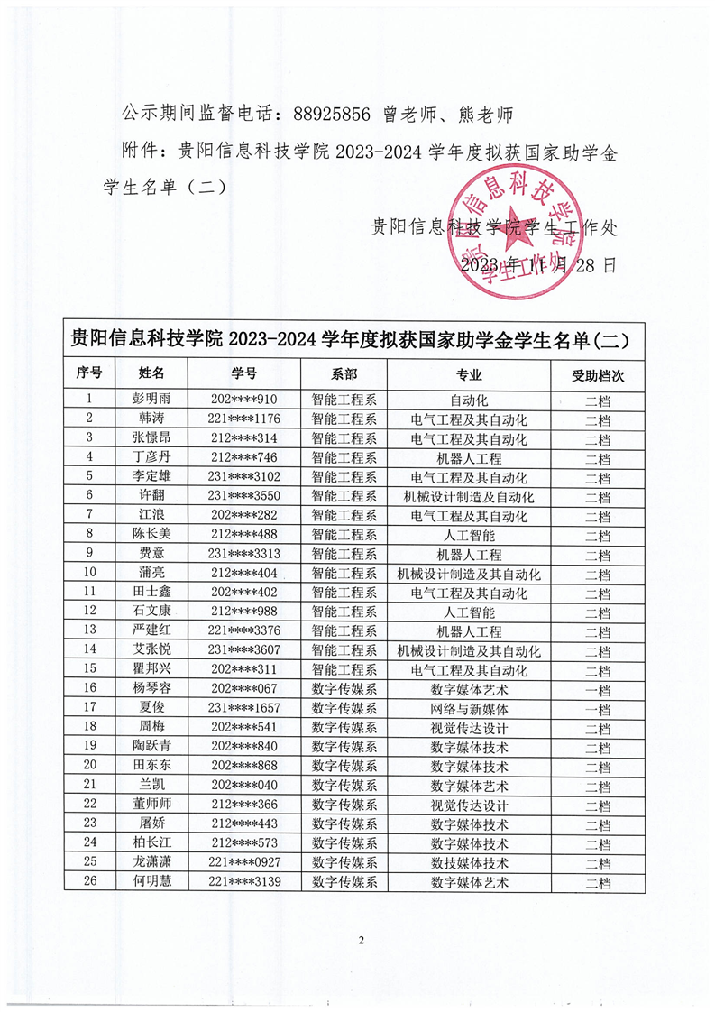 2023-2024学年度拟获国家助学金学生名单公示(二)