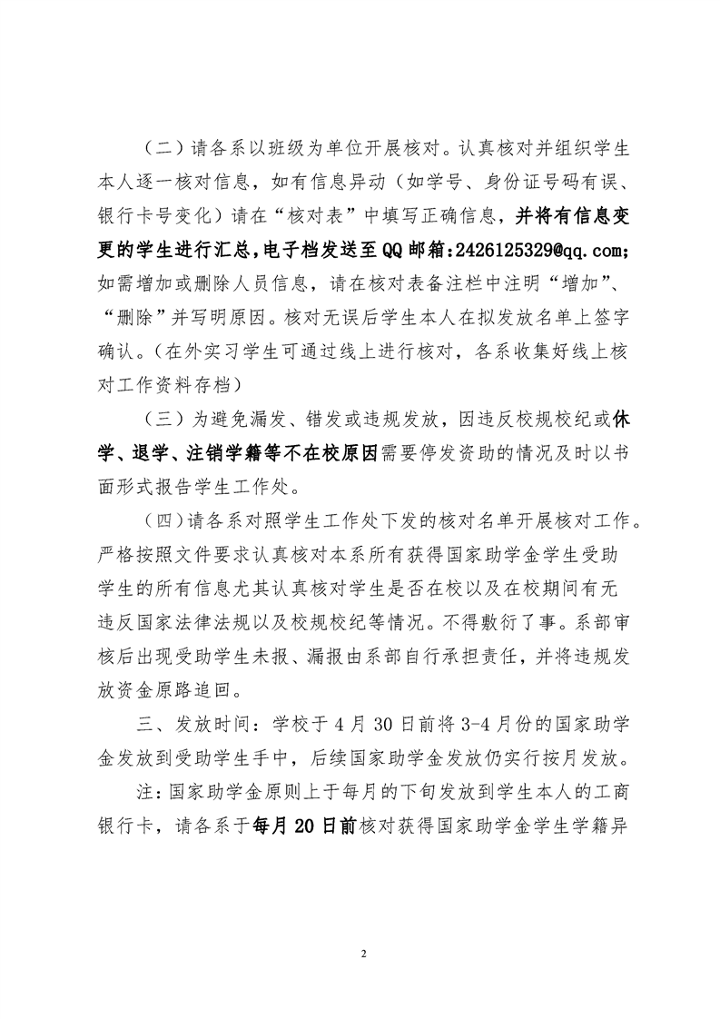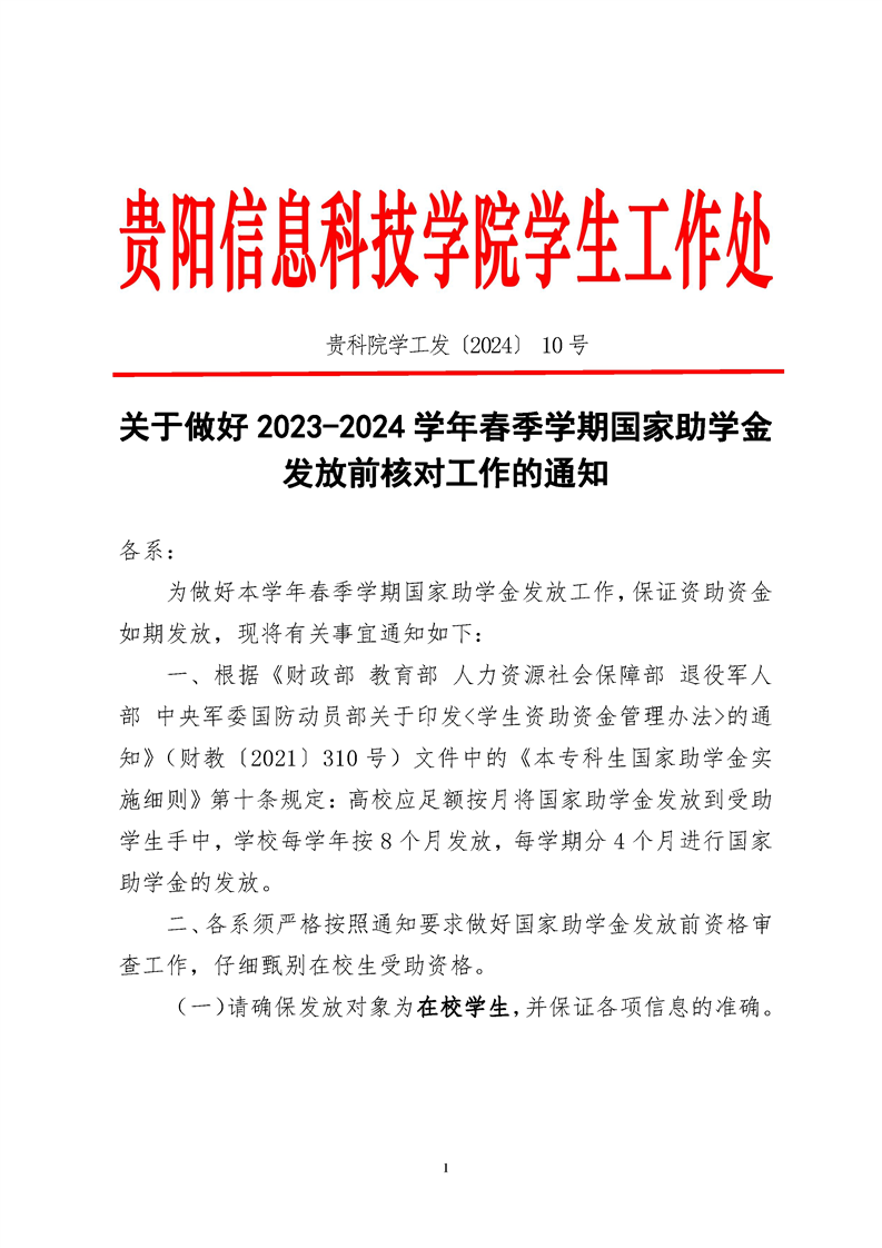 关于做好2023-2024学年度春季学期国家助学金发放前核对工作的通知