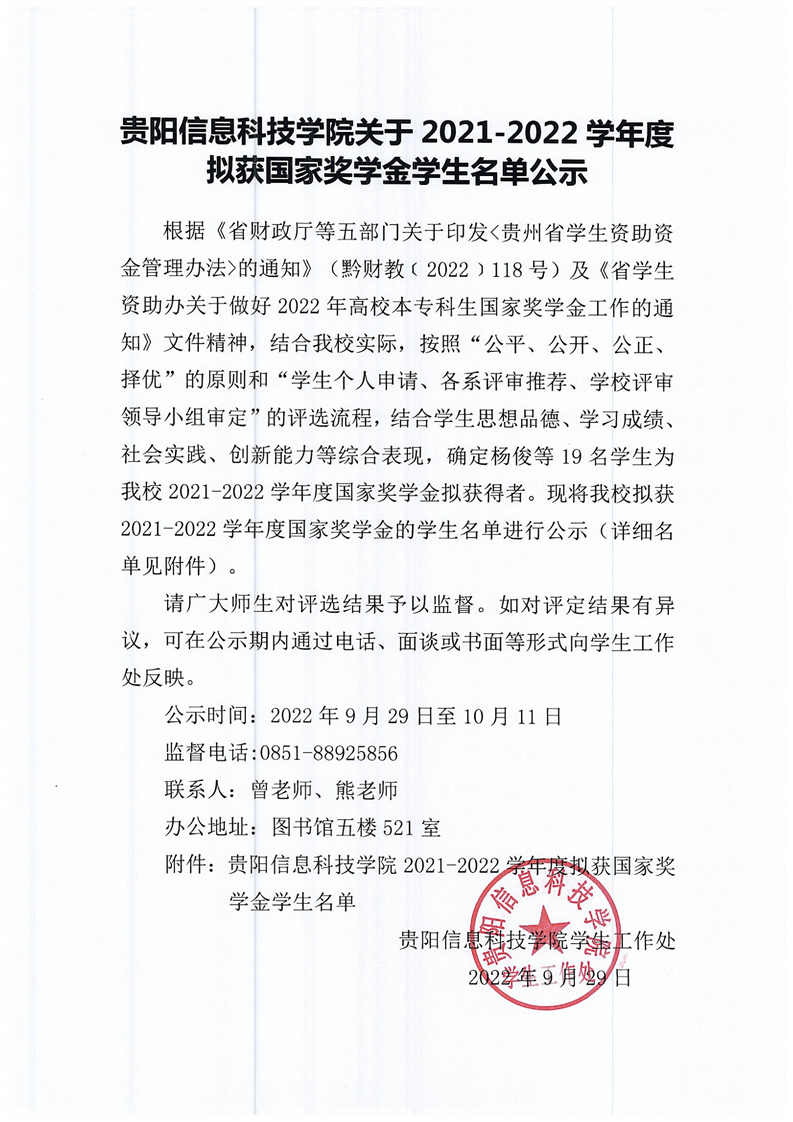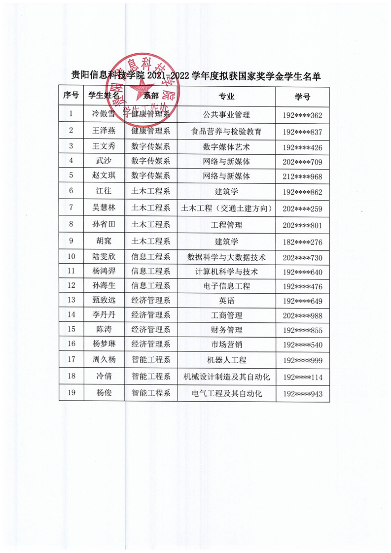 BV伟德中国官方网站关于2021-2022学年度拟获国家奖学金学生名单公示