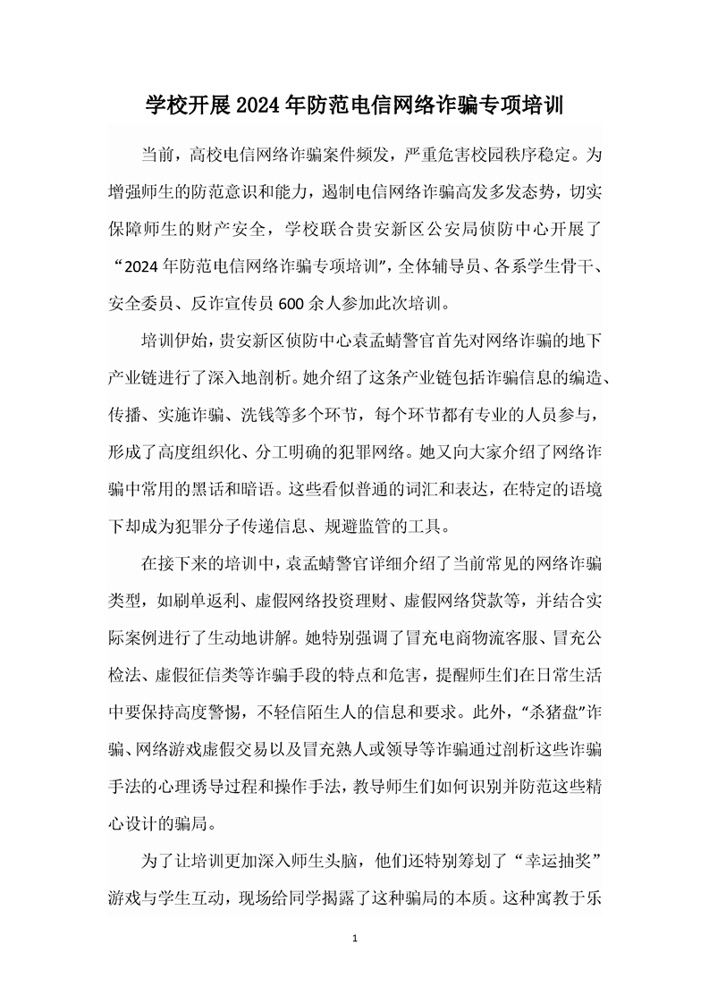 学校开展2024年防范电信网络诈骗专项培训
