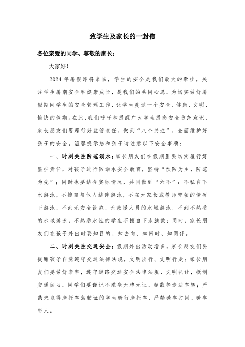 平安暑假|致学生及家长的一封信