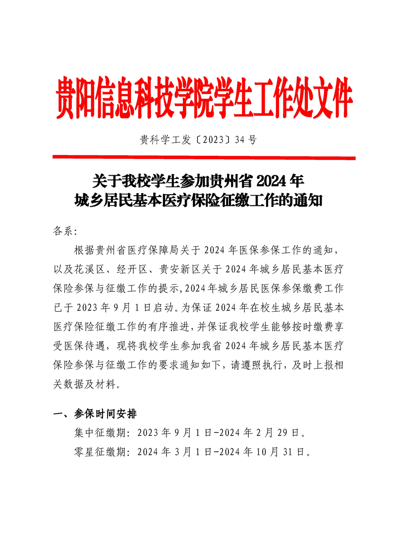关于伟德官网学生参加贵州省2024年城乡居民基本医疗保险征缴工作的通知