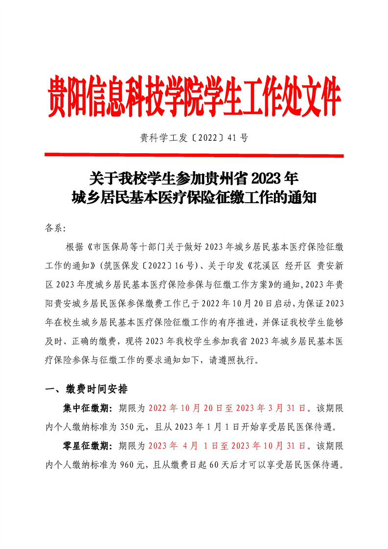 关于伟德官网学生参加贵州省2023年城乡居民基本医疗保险征缴工作的通知