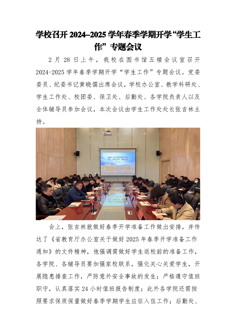 学校召开2024-2025学年春季学期开学“学生工作”专题会议
