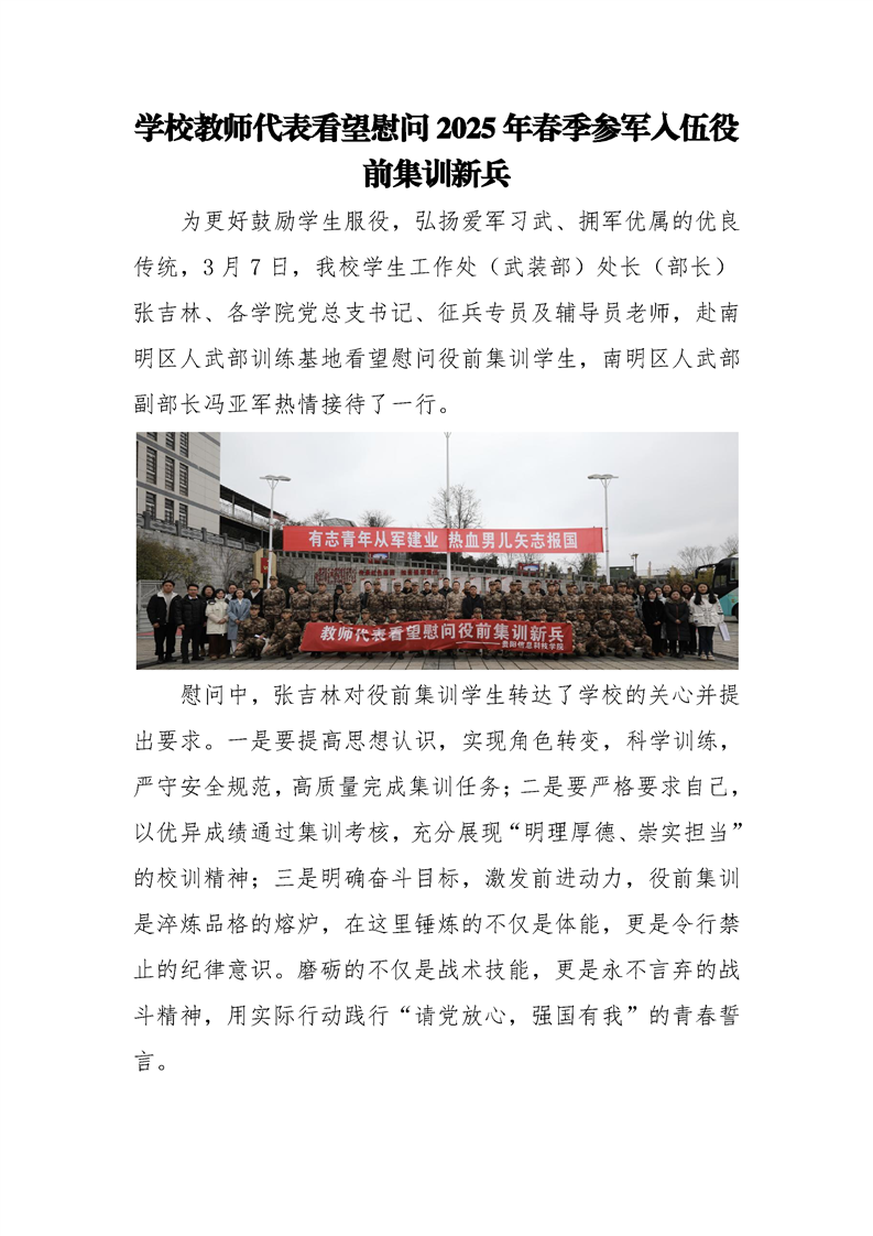 学校教师代表看望慰问2025年春季参军入伍役前集训新兵