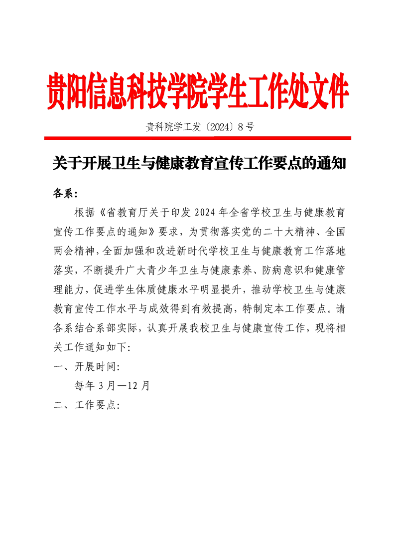 关于开展卫生与健康教育宣传工作要点的通知