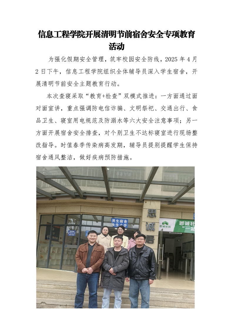 信息工程学院开展清明节前宿舍安全专项教育活动